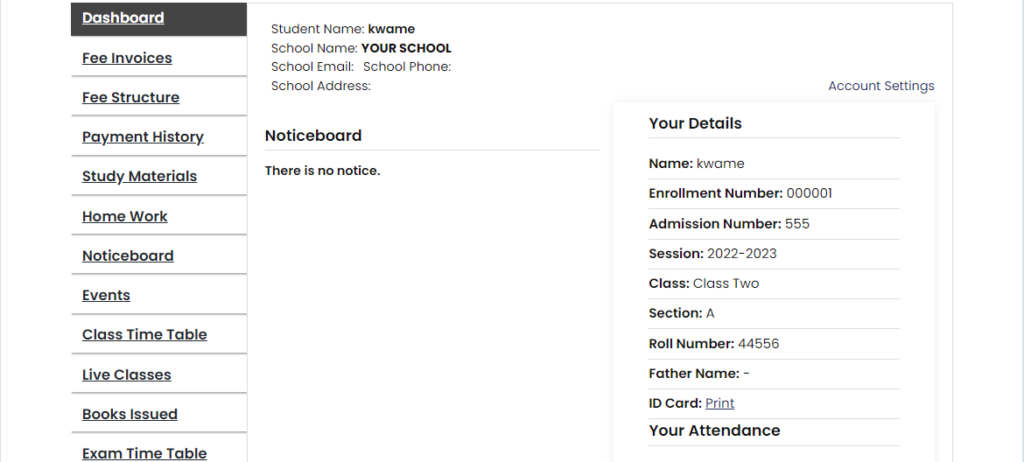 The academic module is where your teachers, students, parents and corporate partners connect to your school. They can check attendance, grades and what happened in class, it also allows users to communicate with each other.